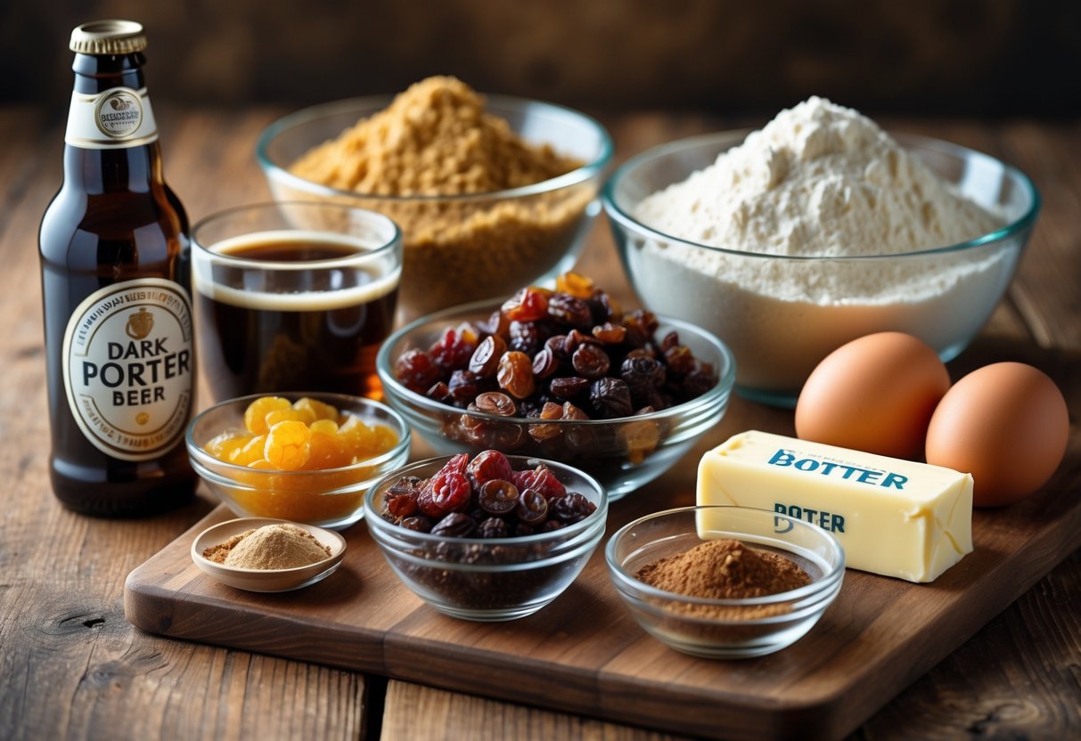 You’ll need a few key ingredients for classic porter cake flavor and texture. Start with unsalted butter, dark brown sugar, and porter beer or stout for the liquid.